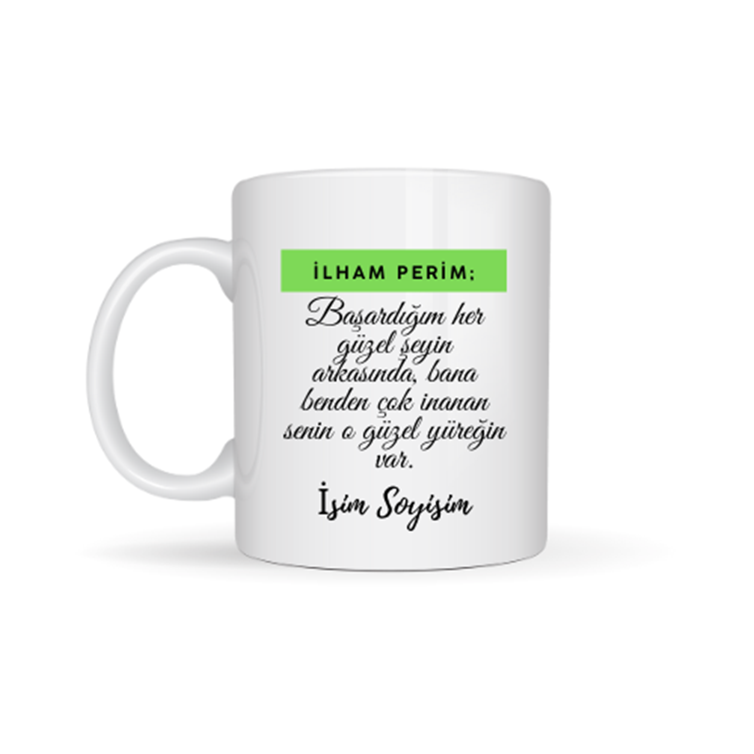 Arkadaşa Özel İlham Perim Tasarımlı Kupa Bardak - Motive Edici Hediye