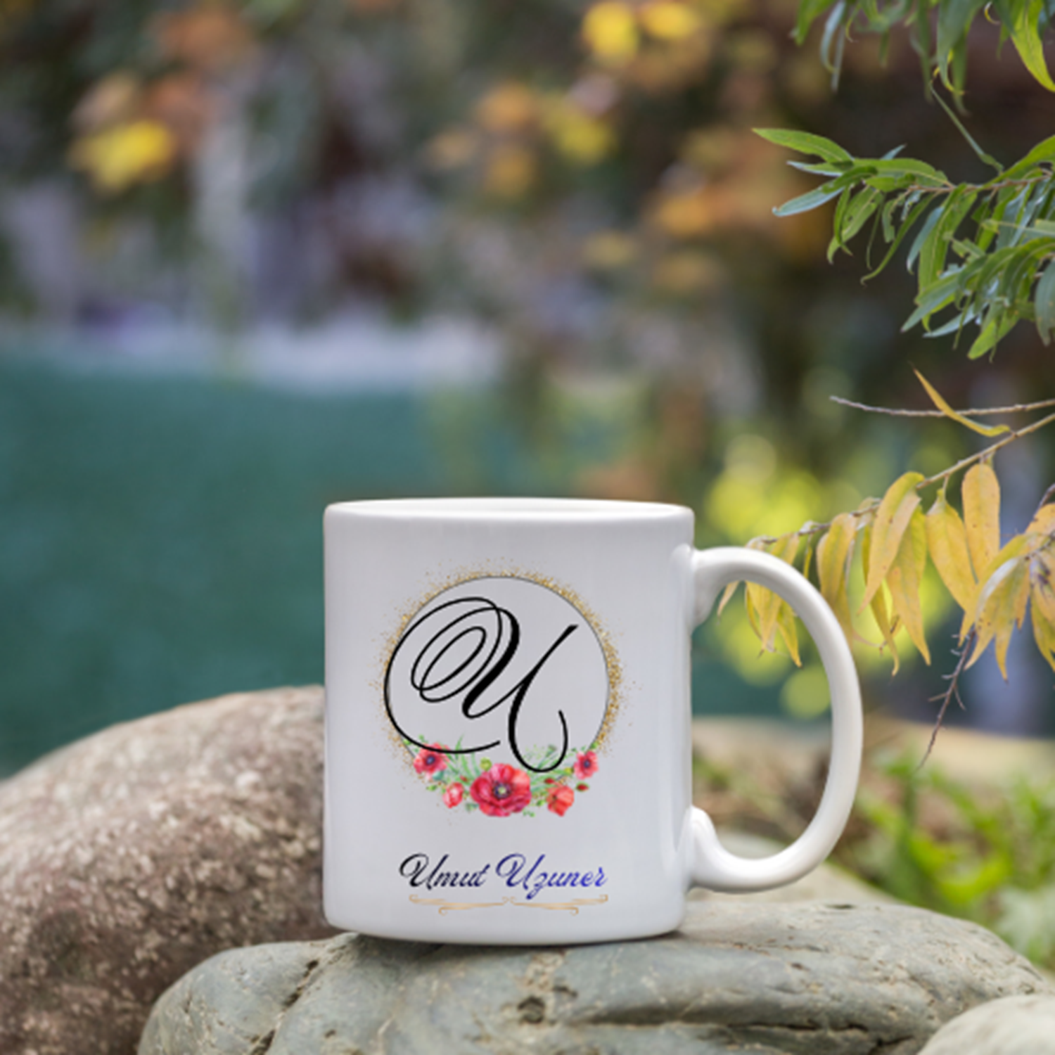 Kişiye Özel U Harfi ve İsim Yazılı Kupa Bardak