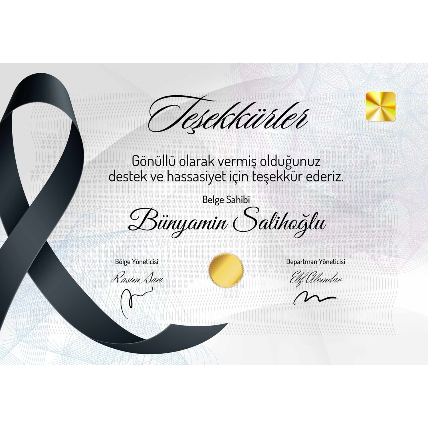 Siyah Gri Dikkat Çekici Teşekkürler Sertifika ( A4 - 300 gr )
