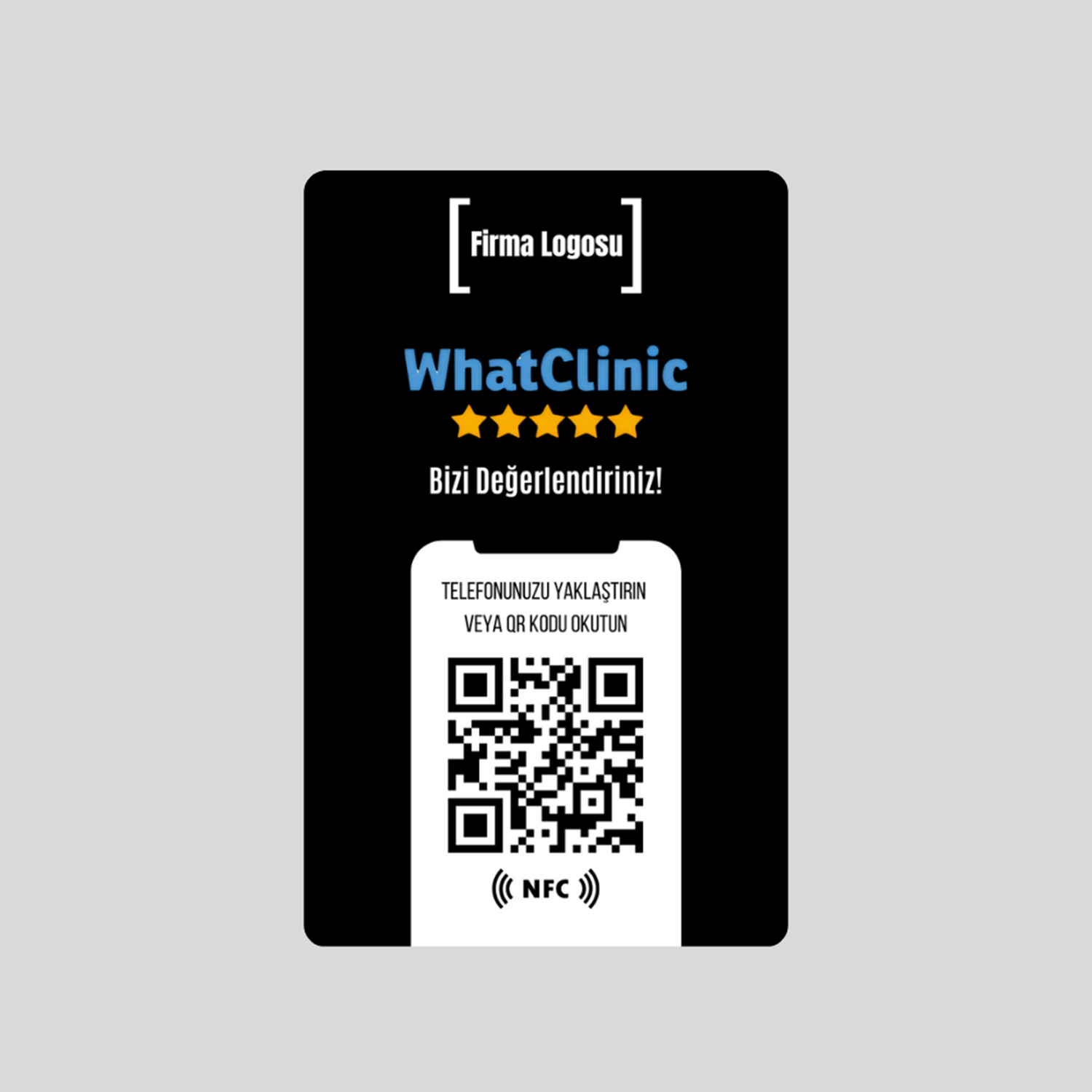 - Kart, müşterilerin işletmeniz hakkında yorum ve puan bırakmasını sağlayan bir QR kodu içerir.