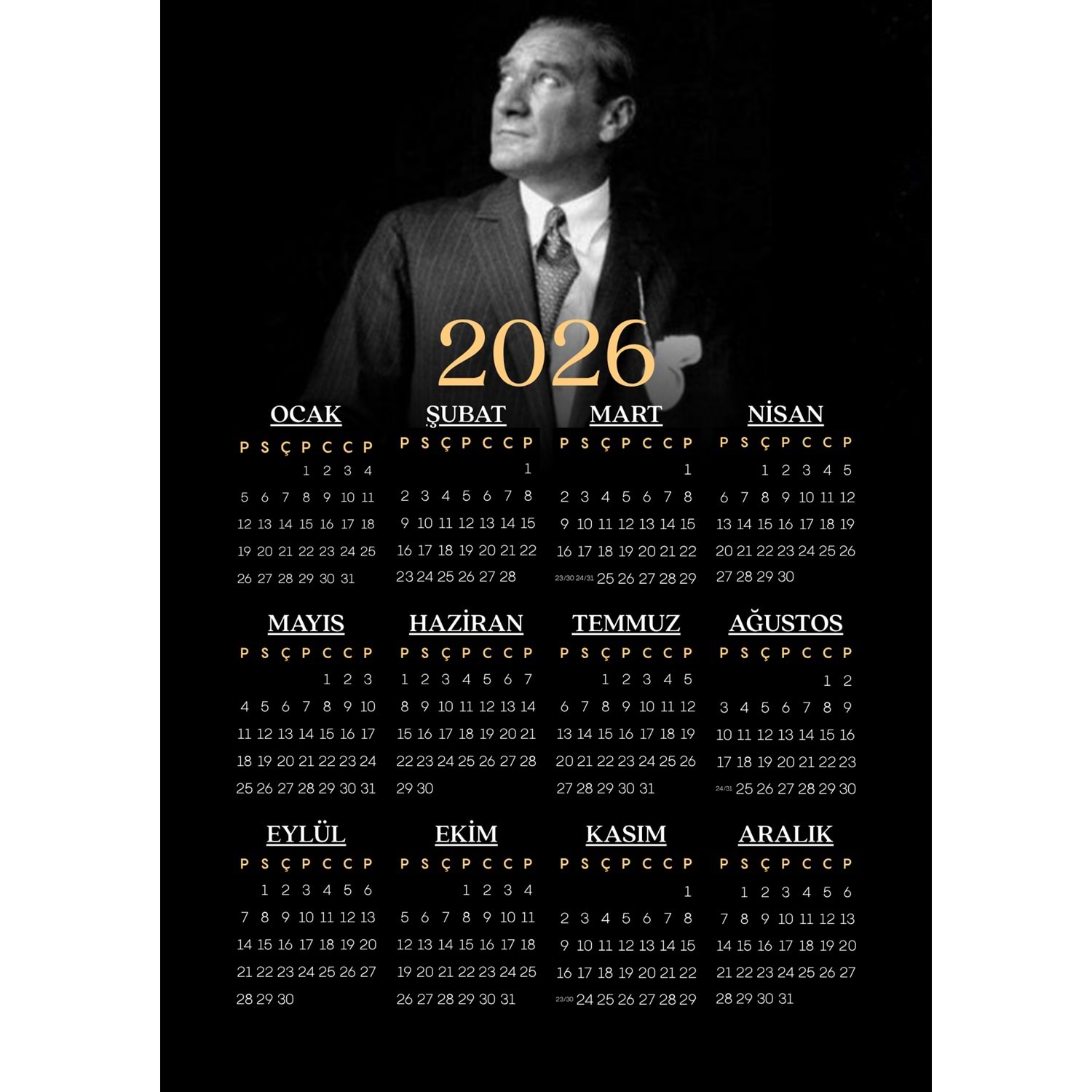 2026 yılına özel hazırlanan bu Atatürk Takvimi, sadece bir takvim değil; Cumhuriyet’in kurucusuna sevgi, saygı ve minnetle hazırlanmış anlamlı bir koleksiyon parçasıdır.